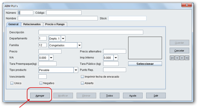 a. Nombre: nombre de PLU que lo copiamos del sistema.