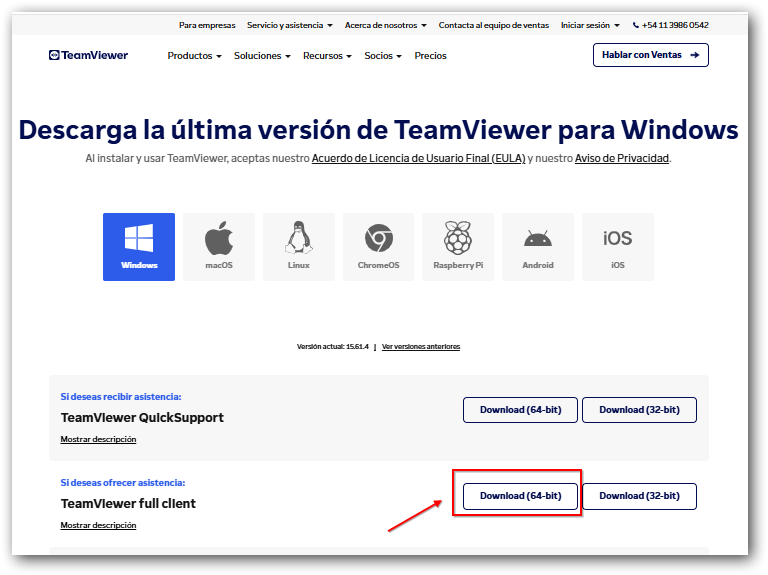 Debemos ingrear al siguiente link [[https://www.teamviewer.com/latam/download/windows/]]