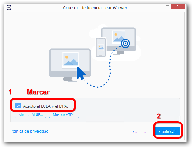 Ejecutamos el archivo descargado que está en nuestra carpeta "Descargas" se llama algo así "Teamviewer_Setup.exe"